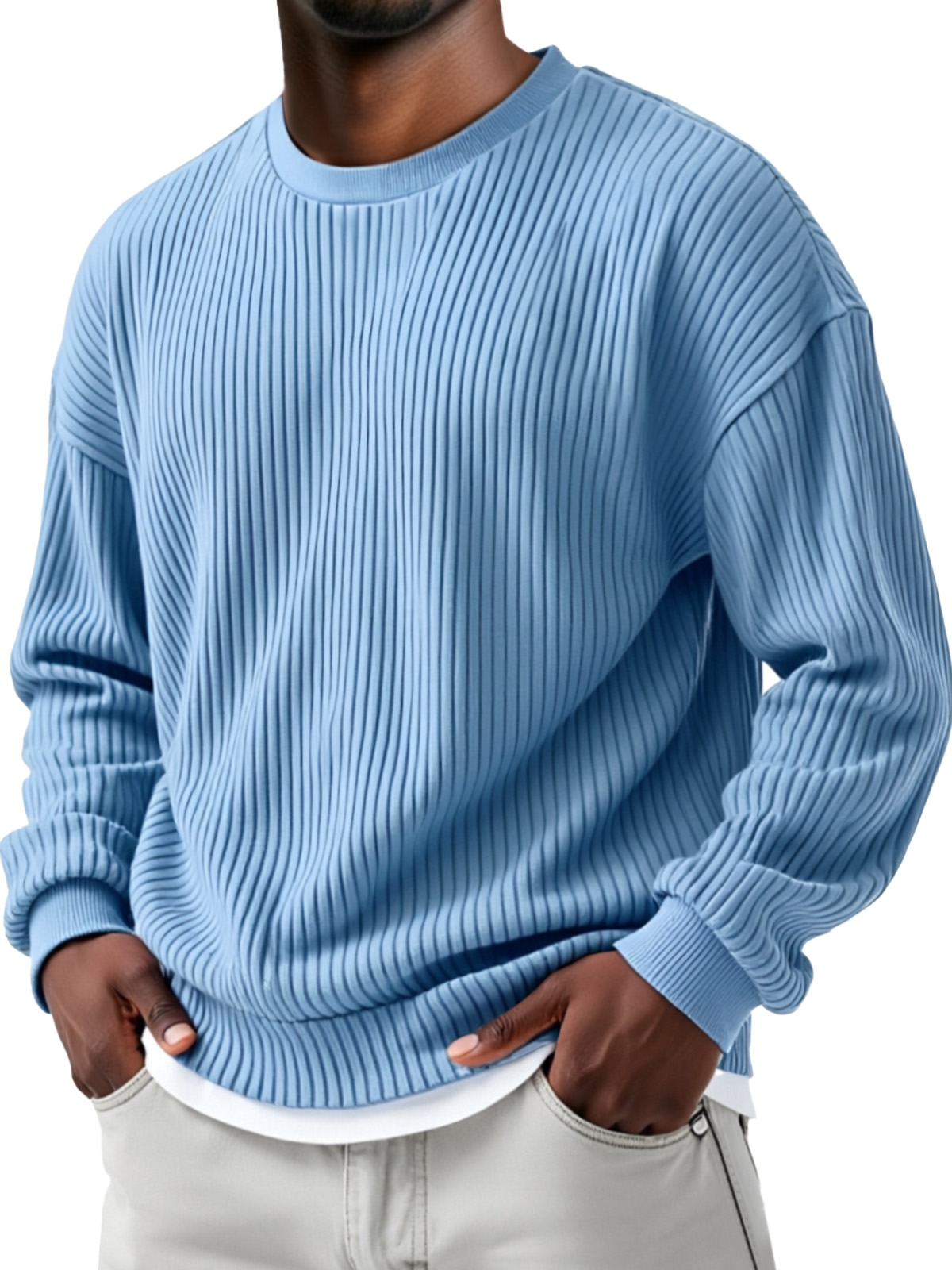 Herren Herbst- und Winter Sweatshirt mit einfarbigem Steppdesign, vertikalen Rillen, Rundhalsausschnitt und langen Ärmeln