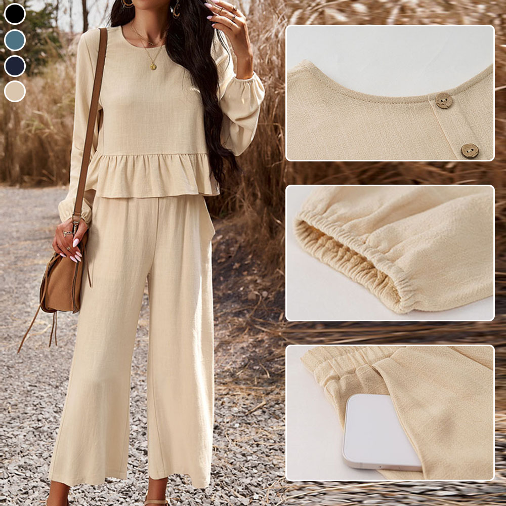 Alvode™ 2024 Frühling Lose Beiläufige Einfarbig Langarm Hosen Frauen Anzug
