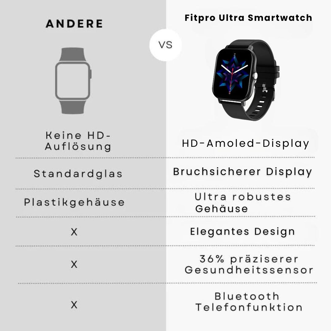 AlvodeFitpro Ultra Smartwatch für iOS/Android Handys mit Echtzeit Herzfrequenzmesser, Blutdruck-/Sauerstoff-Tracker