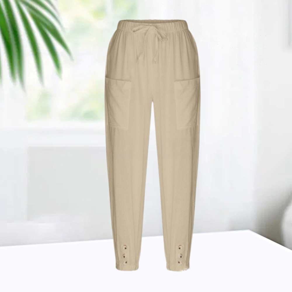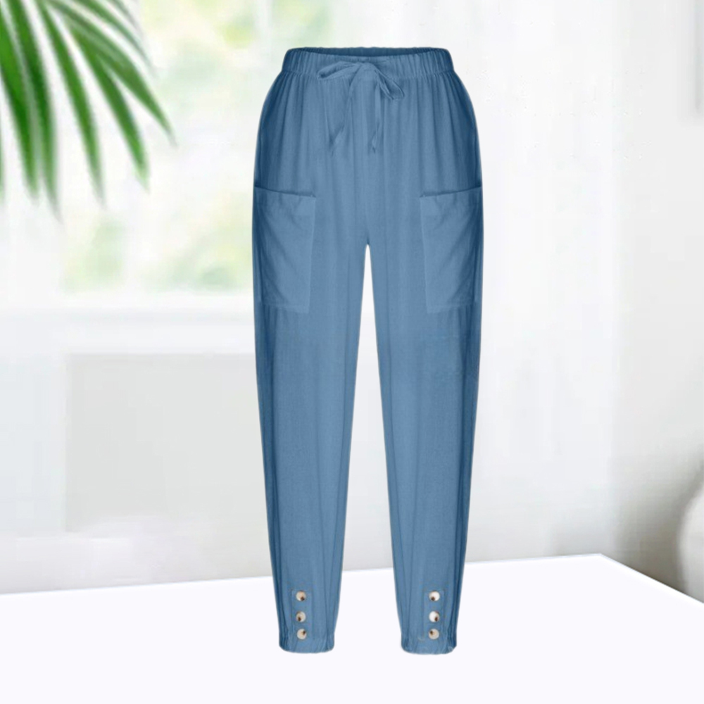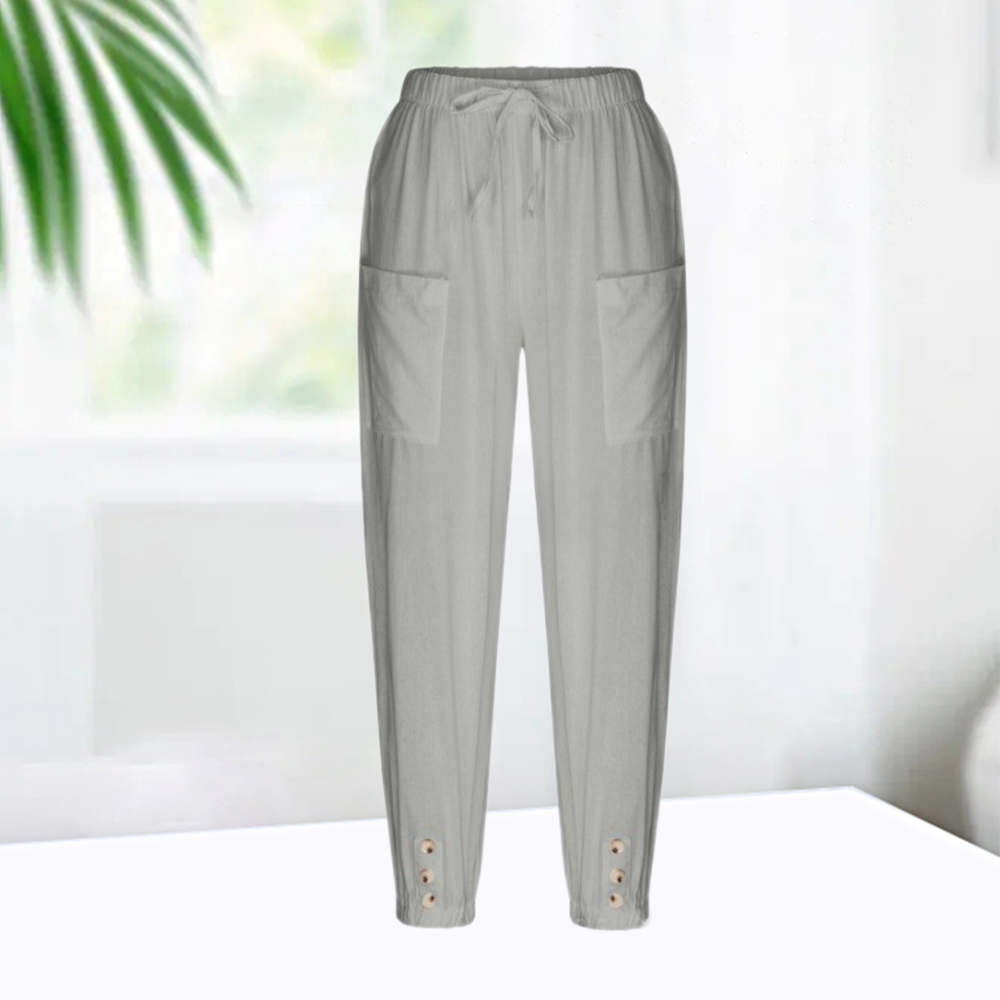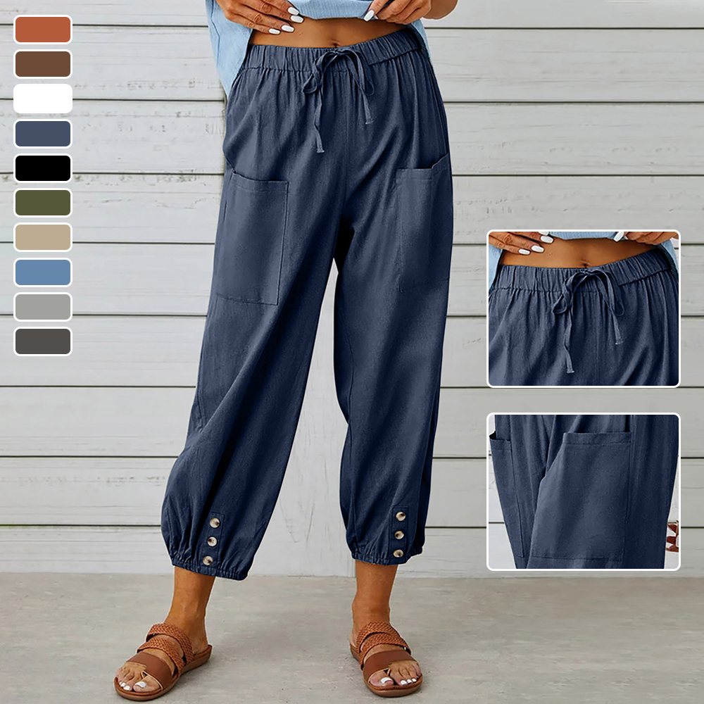 Alvode™ Geknöpfte Damenhose mit weitem Bein aus Baumwolle und Leinen
