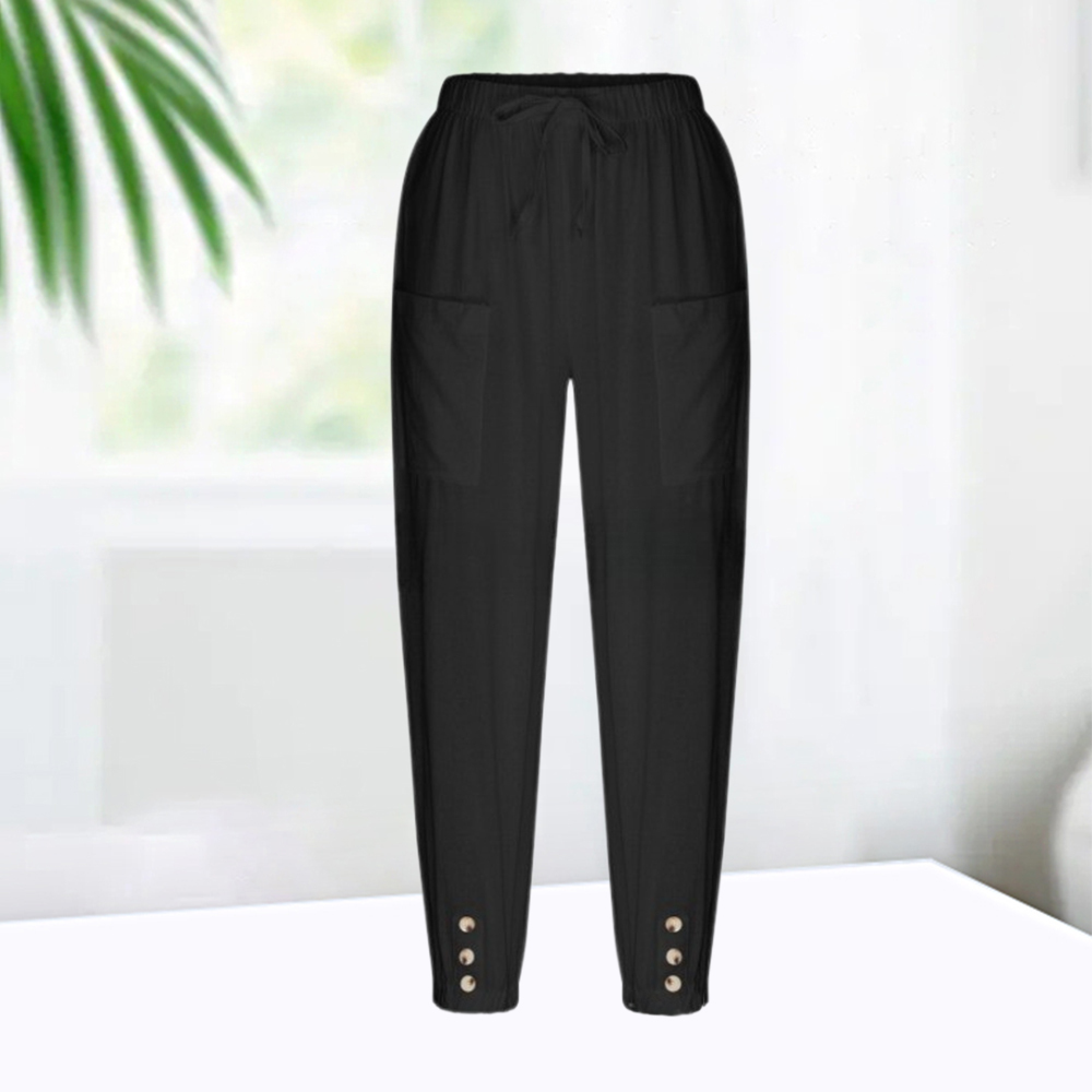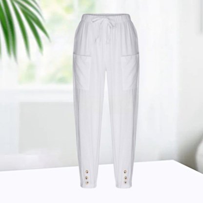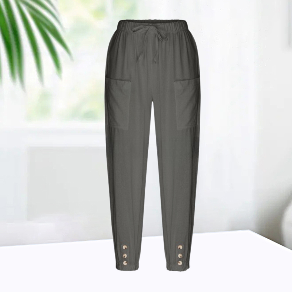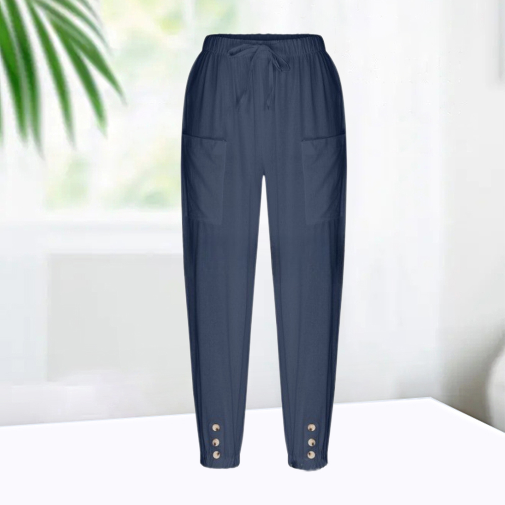 Alvode™ Geknöpfte Damenhose mit weitem Bein aus Baumwolle und Leinen