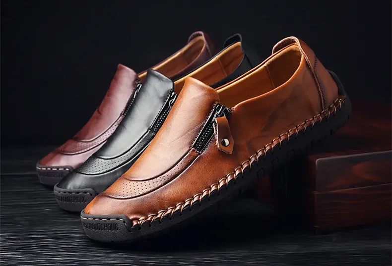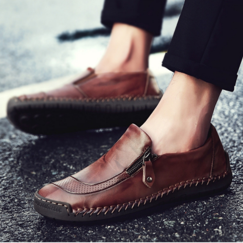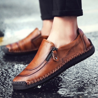 Alvode🔥2024 Heißer Verkauf🎉Herren handgefertigte lässige bequeme Leder-Slipper mit seitlichem Reißverschluss