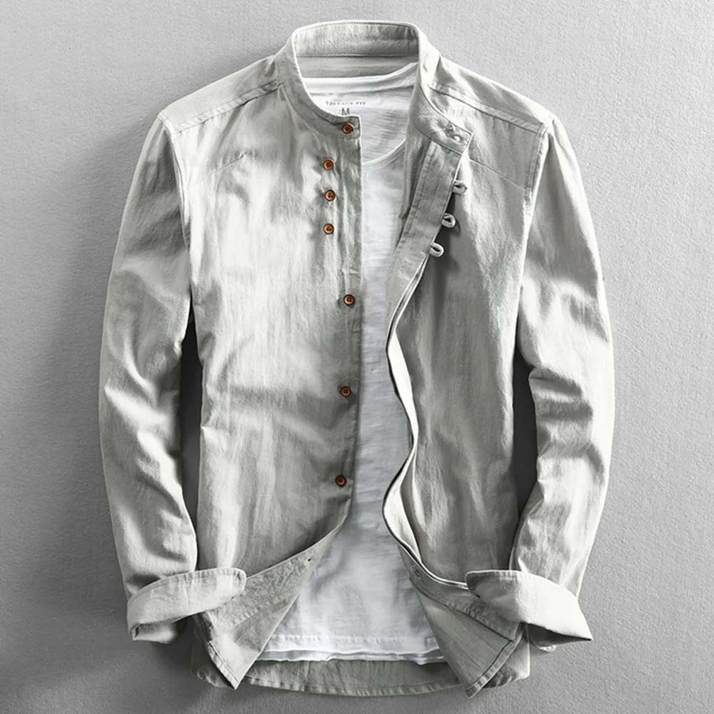 Alvode Herren-Hemd aus Leinen im Vintage-Stil mit Stehkragen