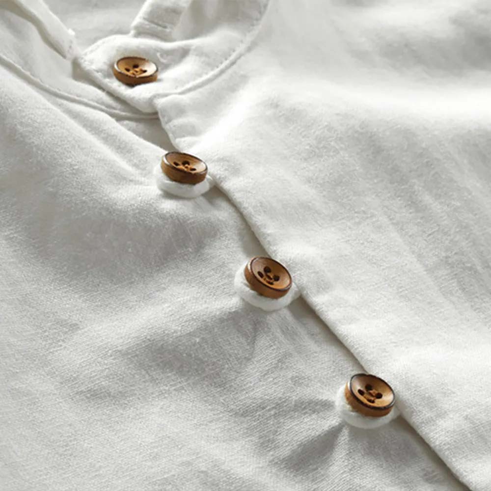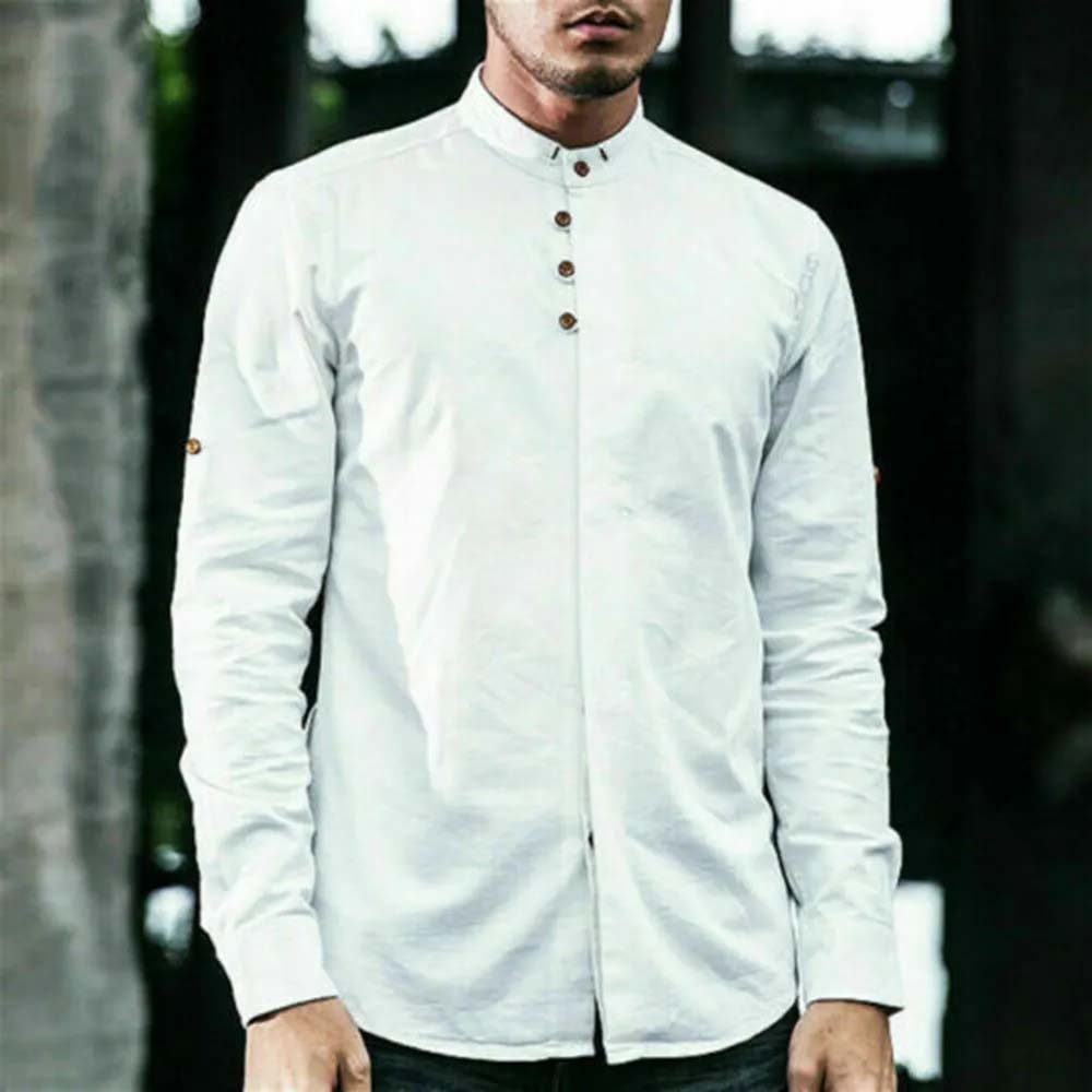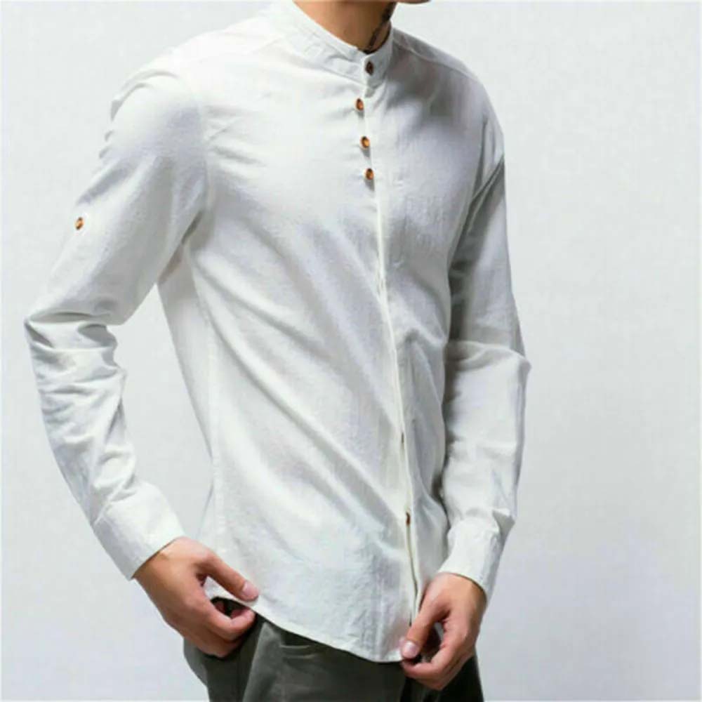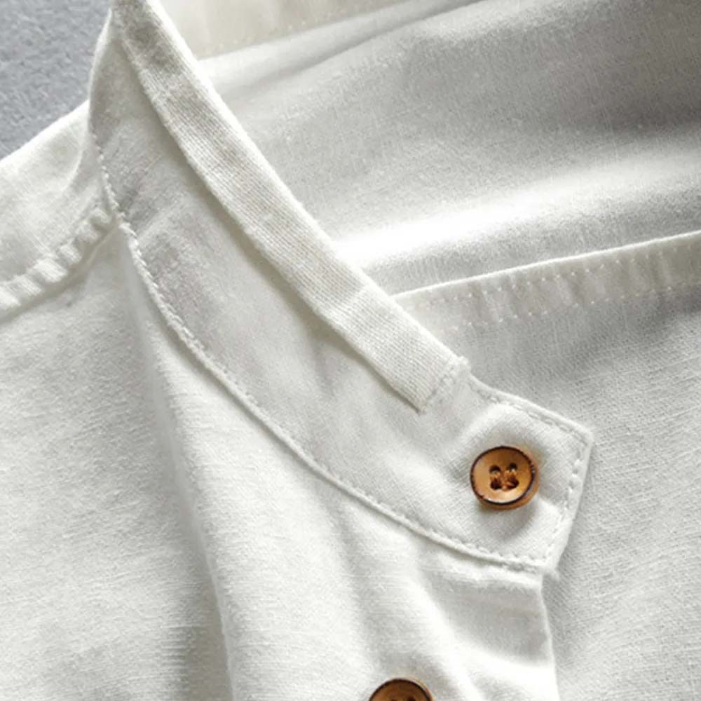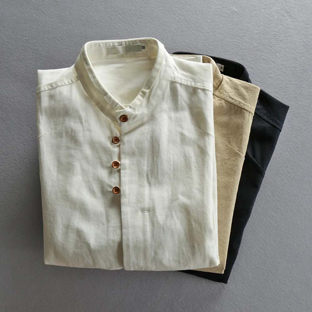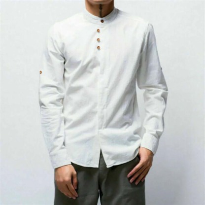Dieses leichte und atmungsaktive Leinenhemd ist perfekt für Sie! Mit seinem modischen Stehkragen-Design, den einfachen Holzknöpfen, der hervorragenden Textur und dem klassischen Retro-Stil ist es heutzutage die beliebteste Wahl.