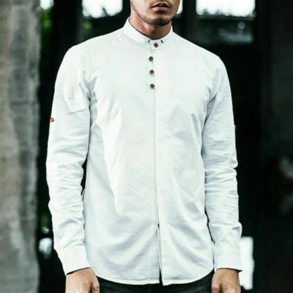 1* Herren-Hemd aus Leinen im Vintage-Stil mit Stehkragen