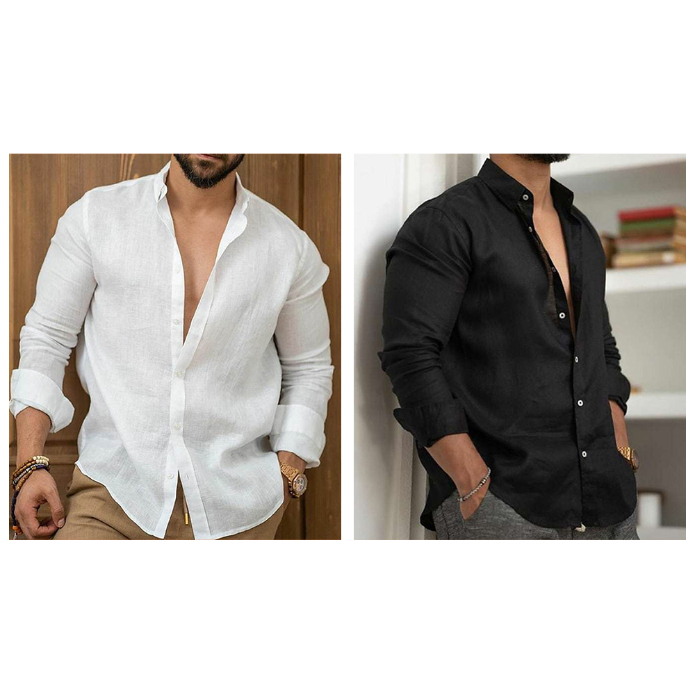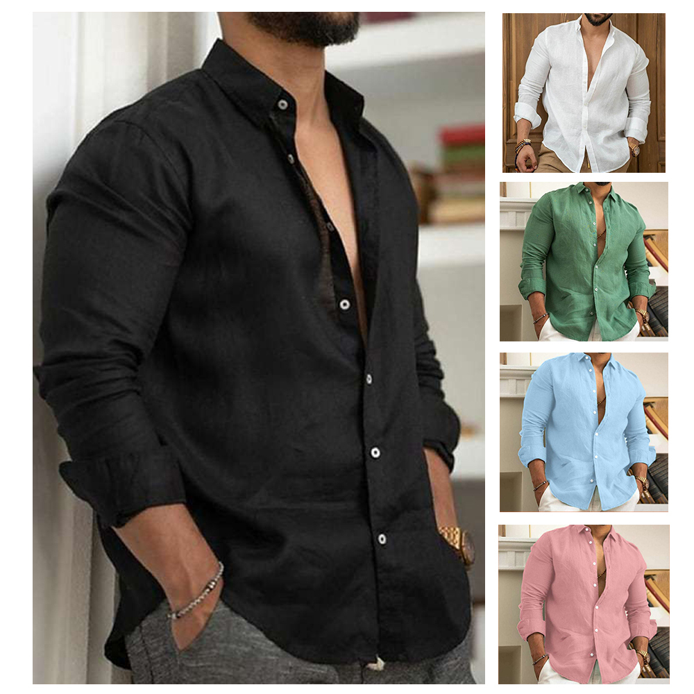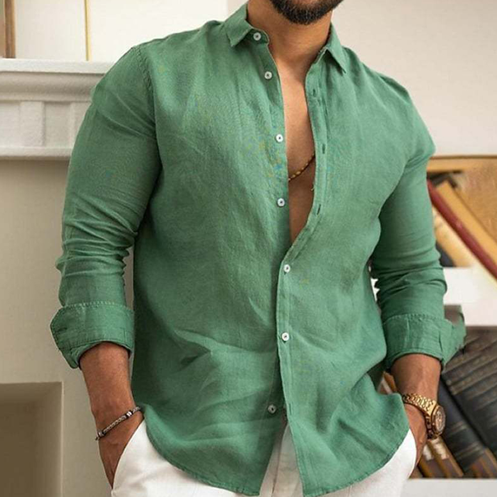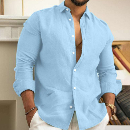 AlvodeHerren-Langarmhemd mit Reverskragen und einfarbigen Knöpfen