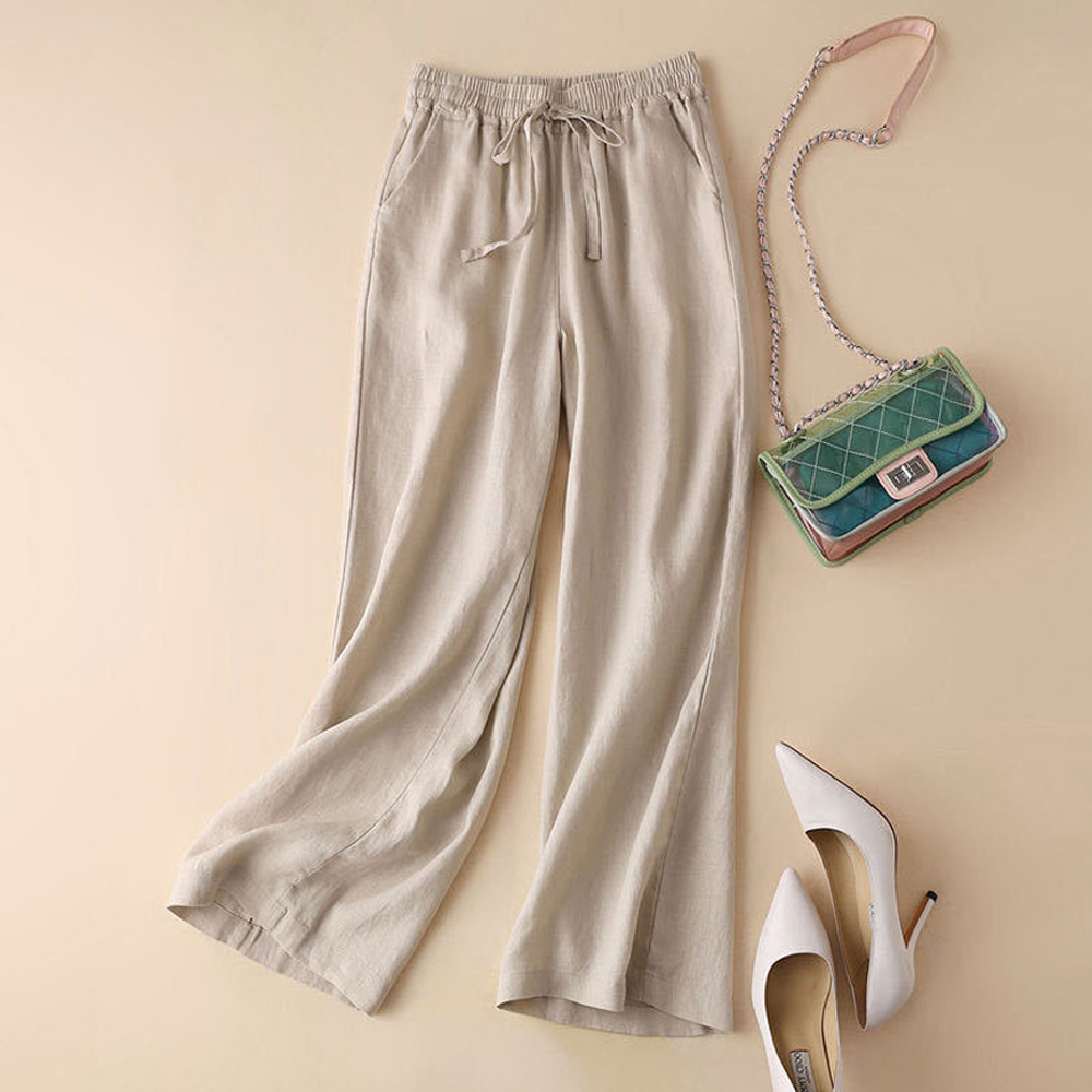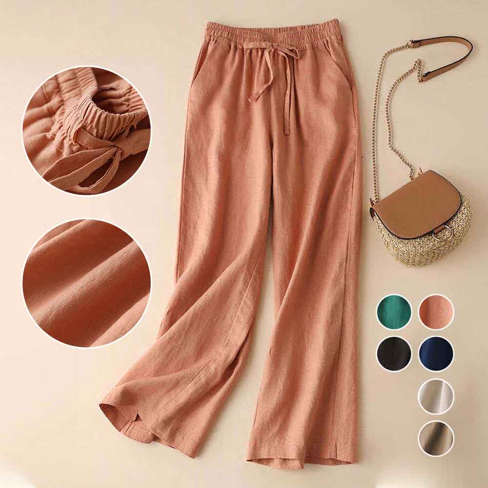 Alvode™ Lässige, lockere Damenhose mit weitem Bein aus atmungsaktiver Baumwolle und Leinen