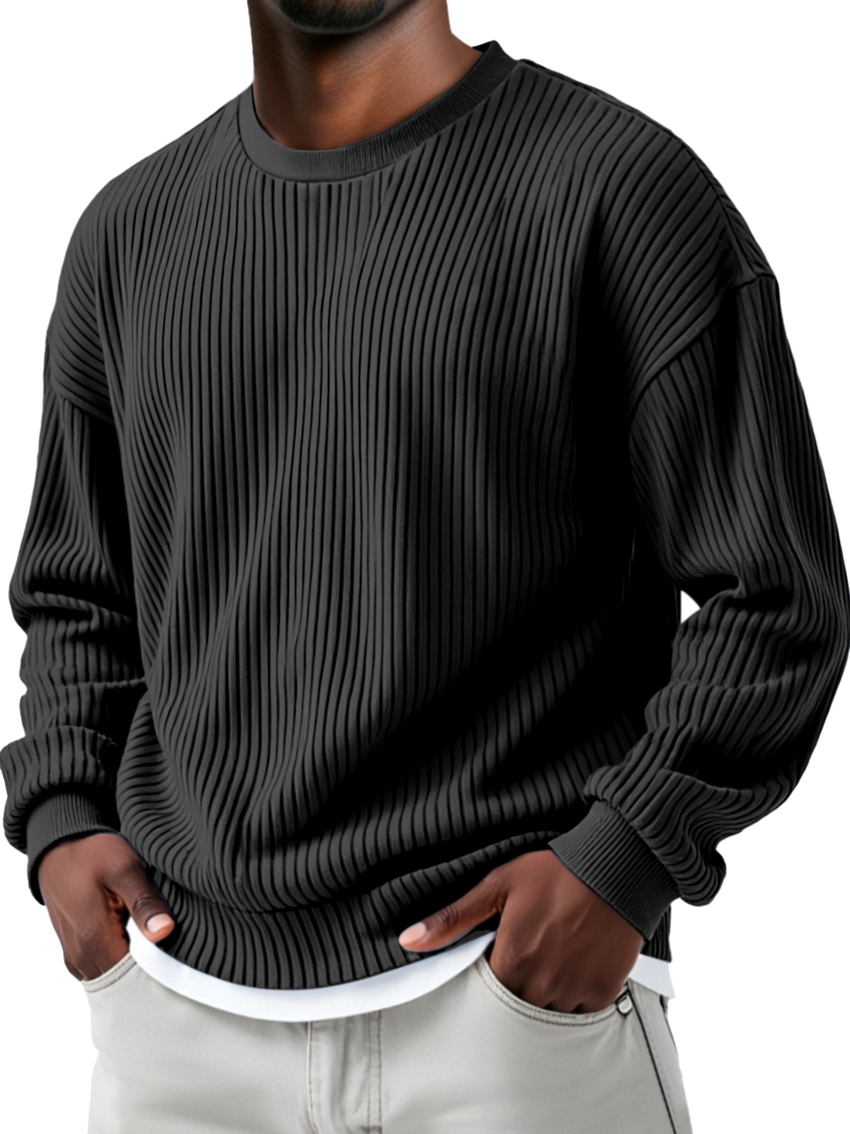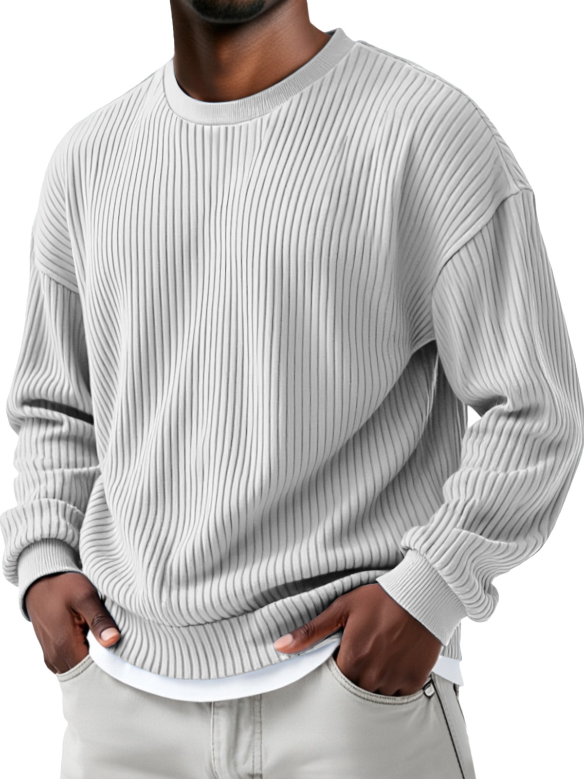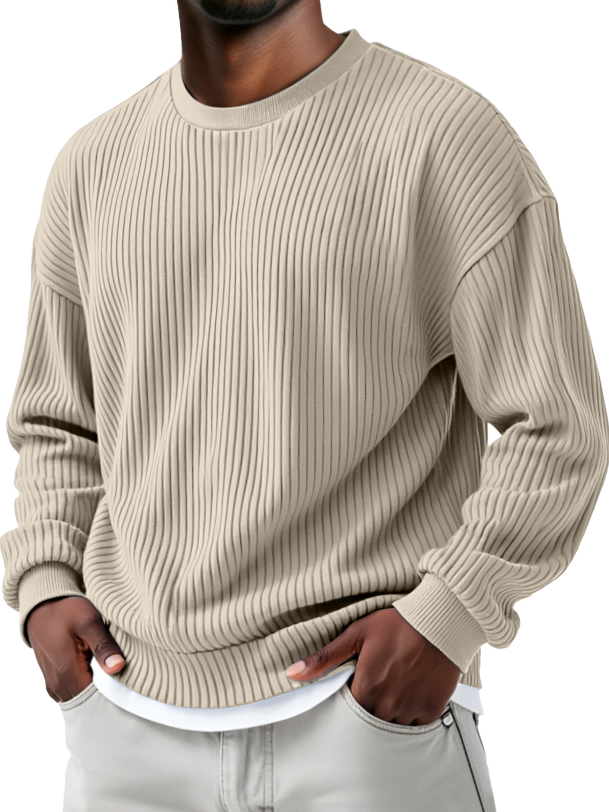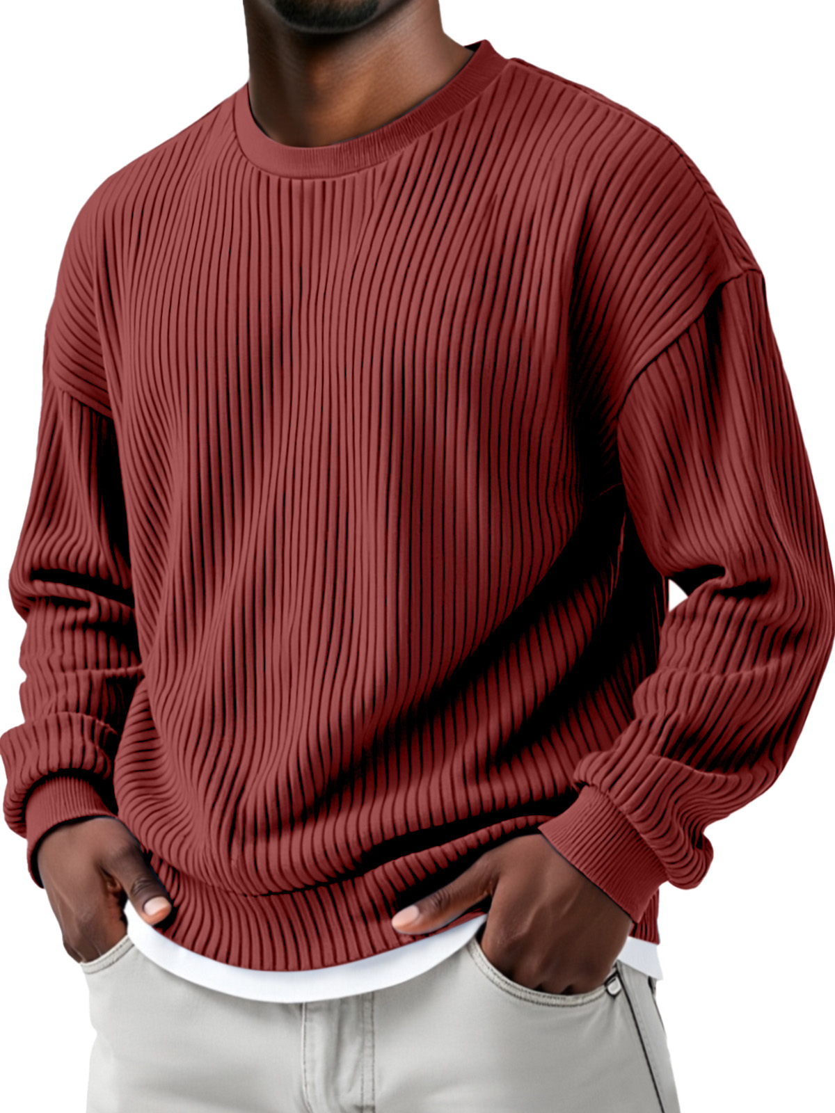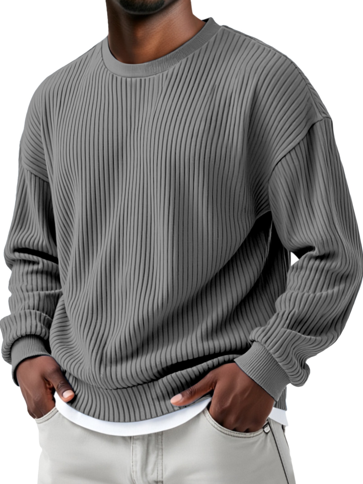 Herren Herbst- und Winter Sweatshirt mit einfarbigem Steppdesign, vertikalen Rillen, Rundhalsausschnitt und langen Ärmeln