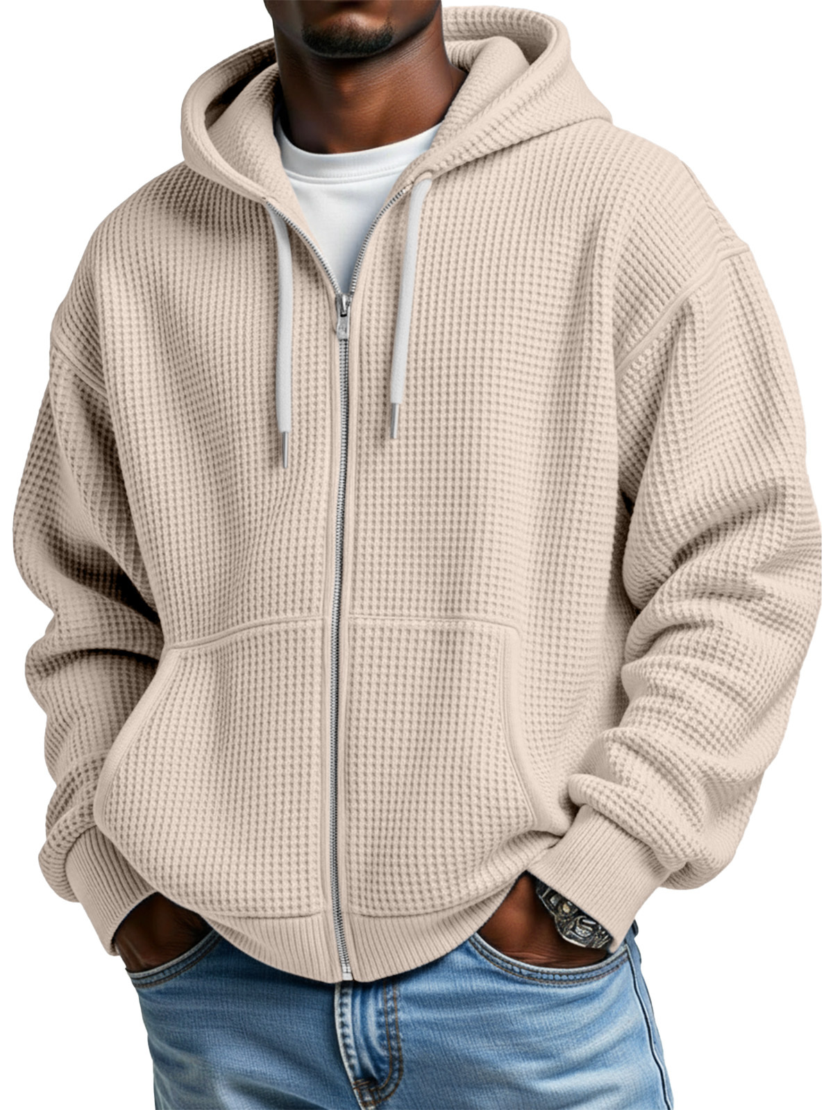 Herren Freizeit Einfarbiger Waffel Langarm Kapuzenmantel