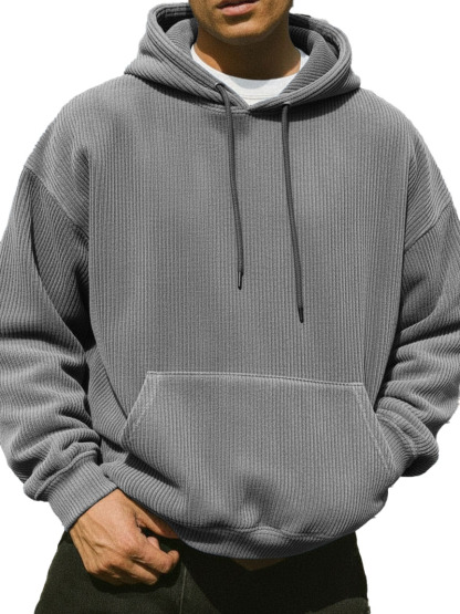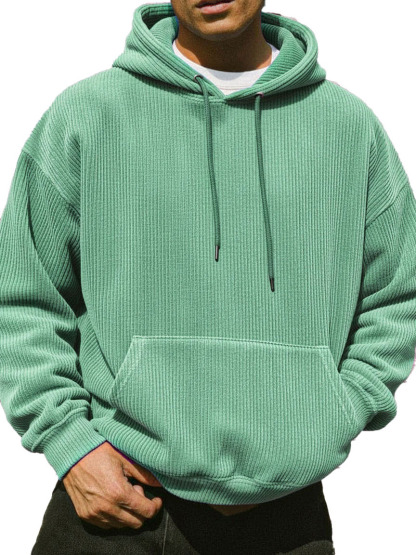 Herren Stylischer Street-Style Ripp-Cordstoff Kapuzenpullover mit Taschen
