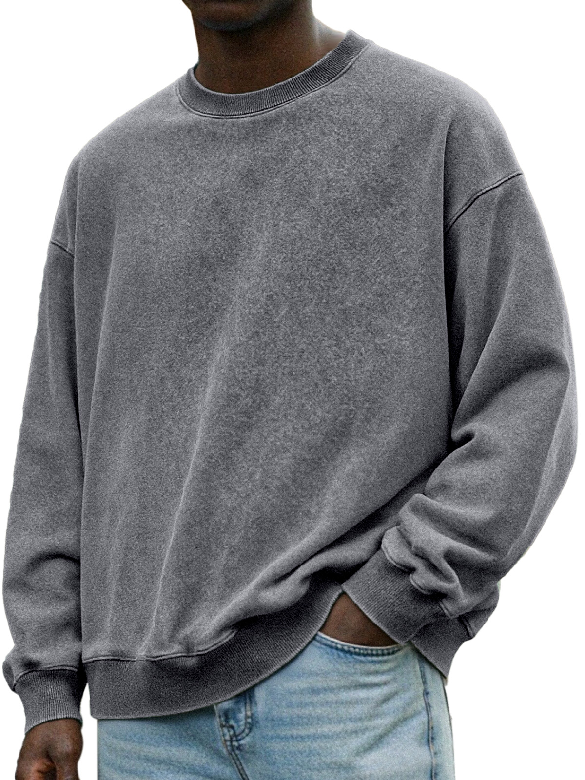 Herren Vintage Distressed Rundhals Langarmpullover