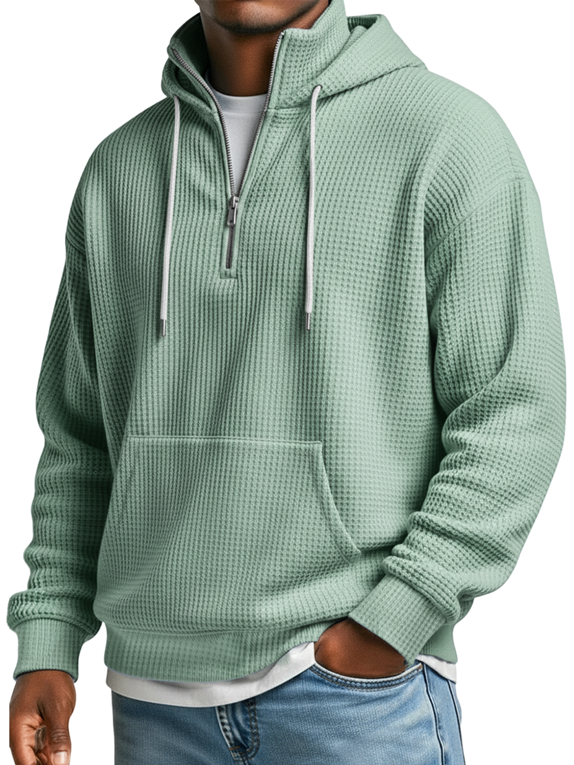 Herren Waffelkragen Reißverschluss Lässiger Lockere Kapuzenpullover