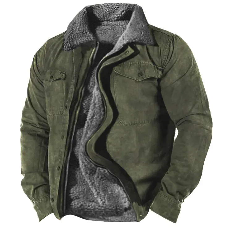 Herren-Wintermantel, Winter-Arbeitsjacken, Plüsch-Fleece, warmes Futter, Reißverschluss, taktische Outdoor-Komfortjacke