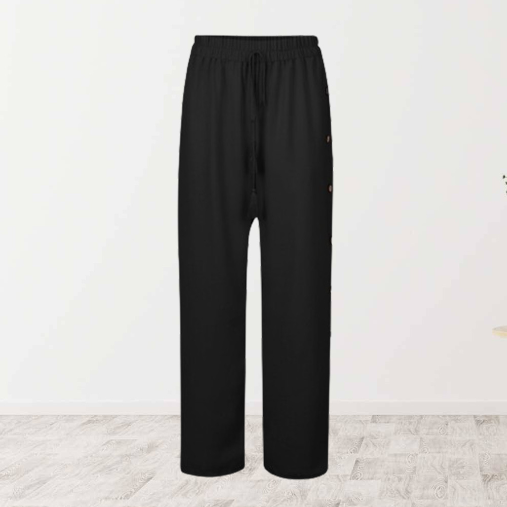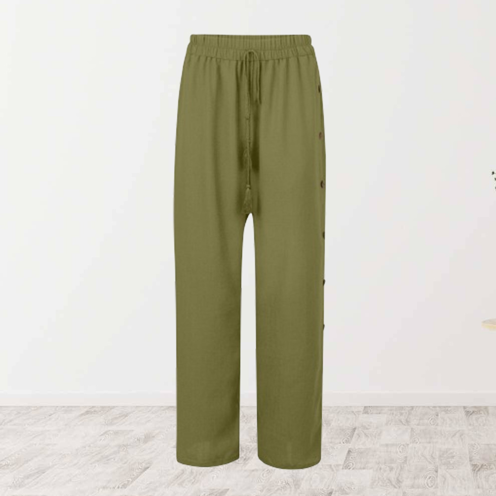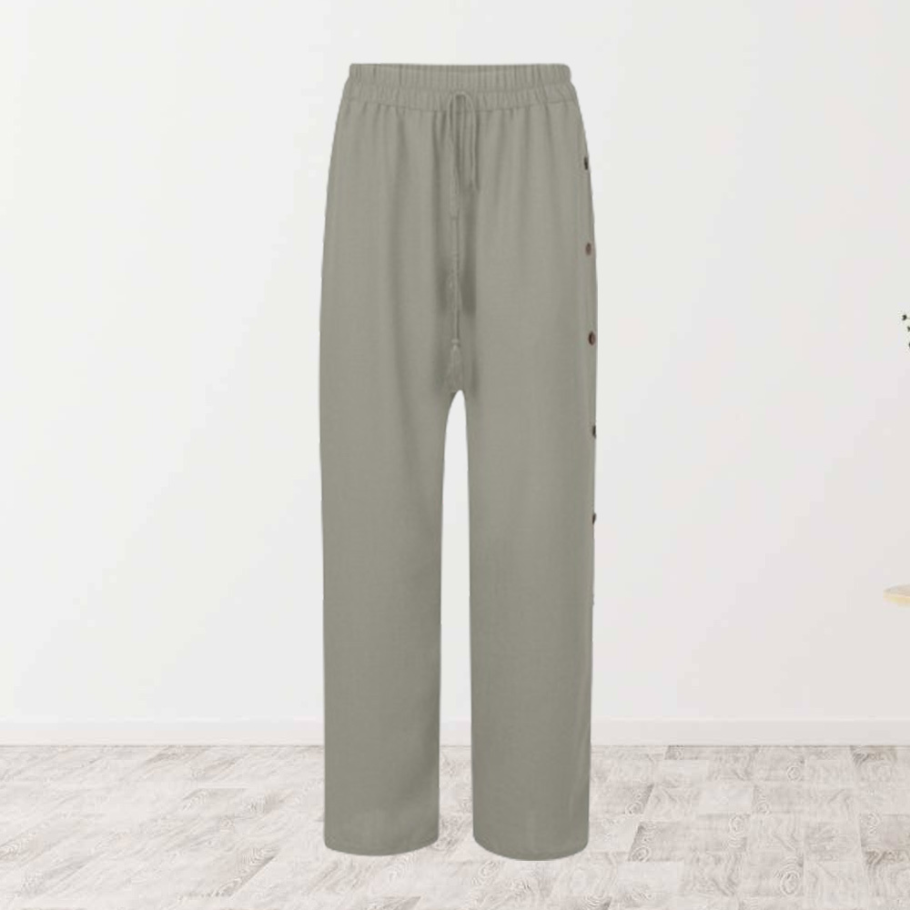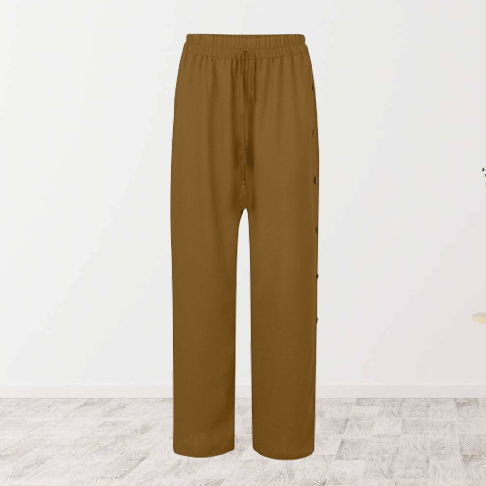 Alvode™ Modische Damen-Hose mit elastischem Bund und lockerem, geknöpftem weitem Bein