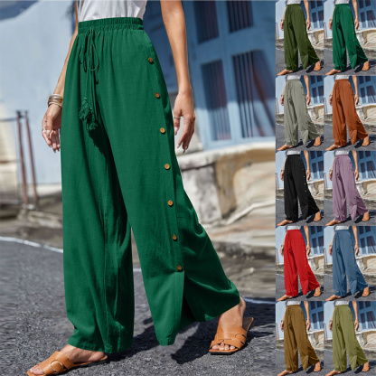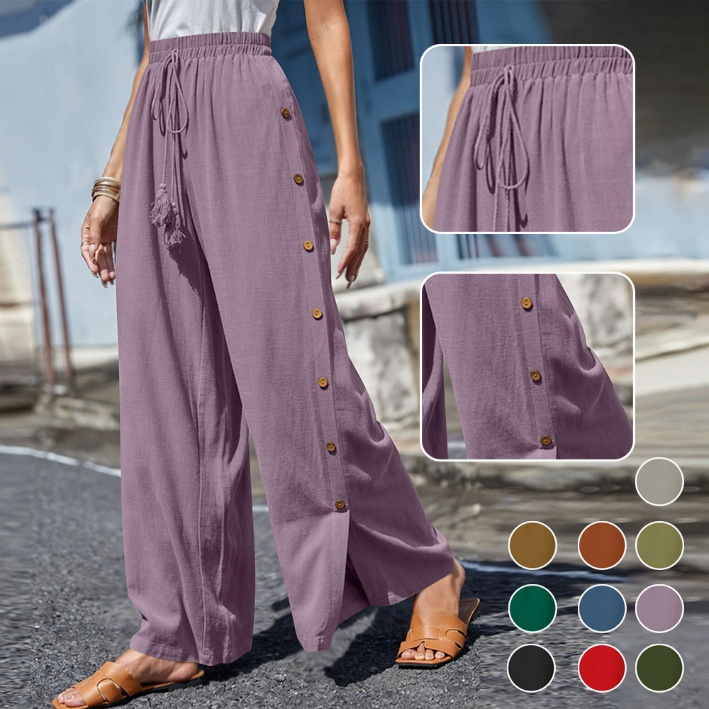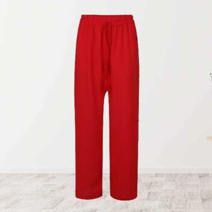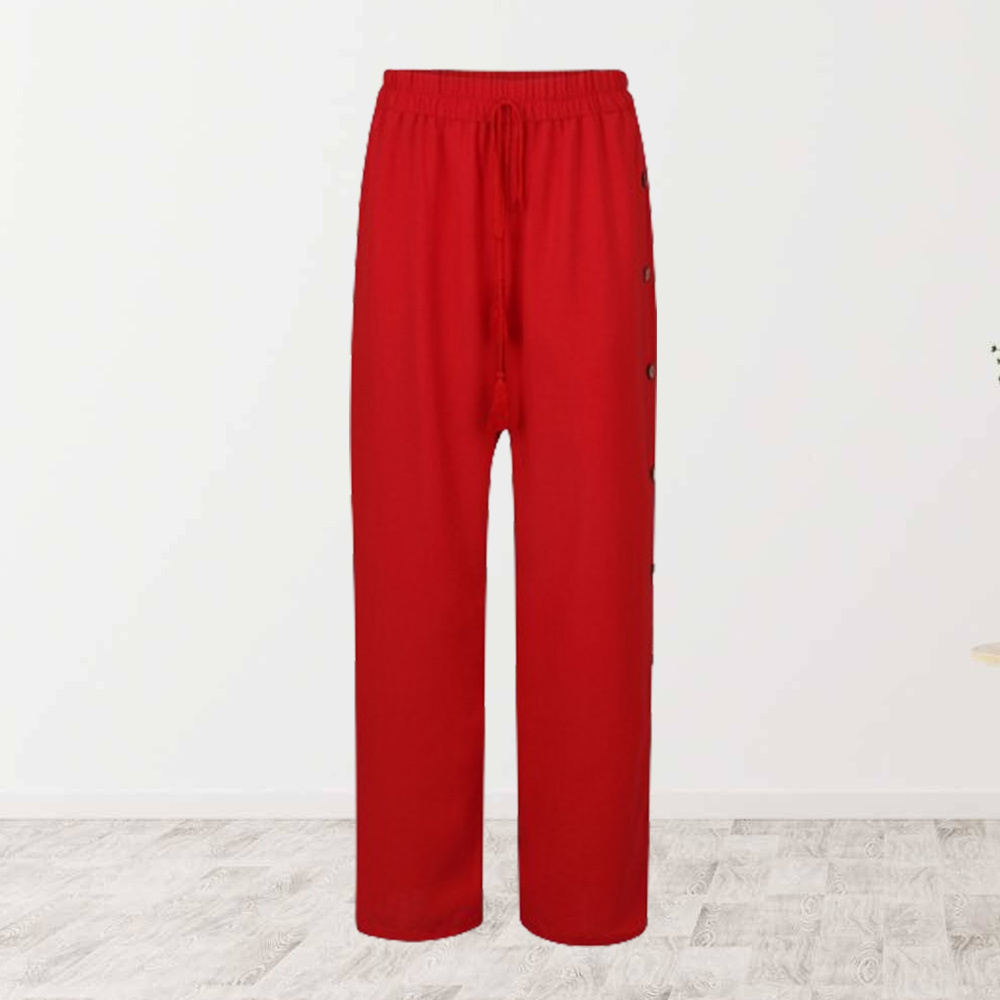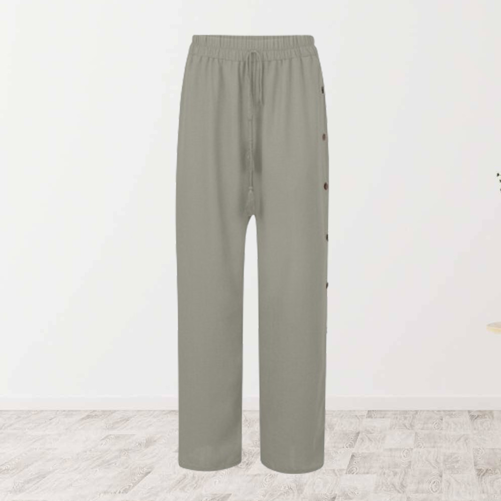 Alvode™ Modische Damen-Hose mit elastischem Bund und lockerem, geknöpftem weitem Bein