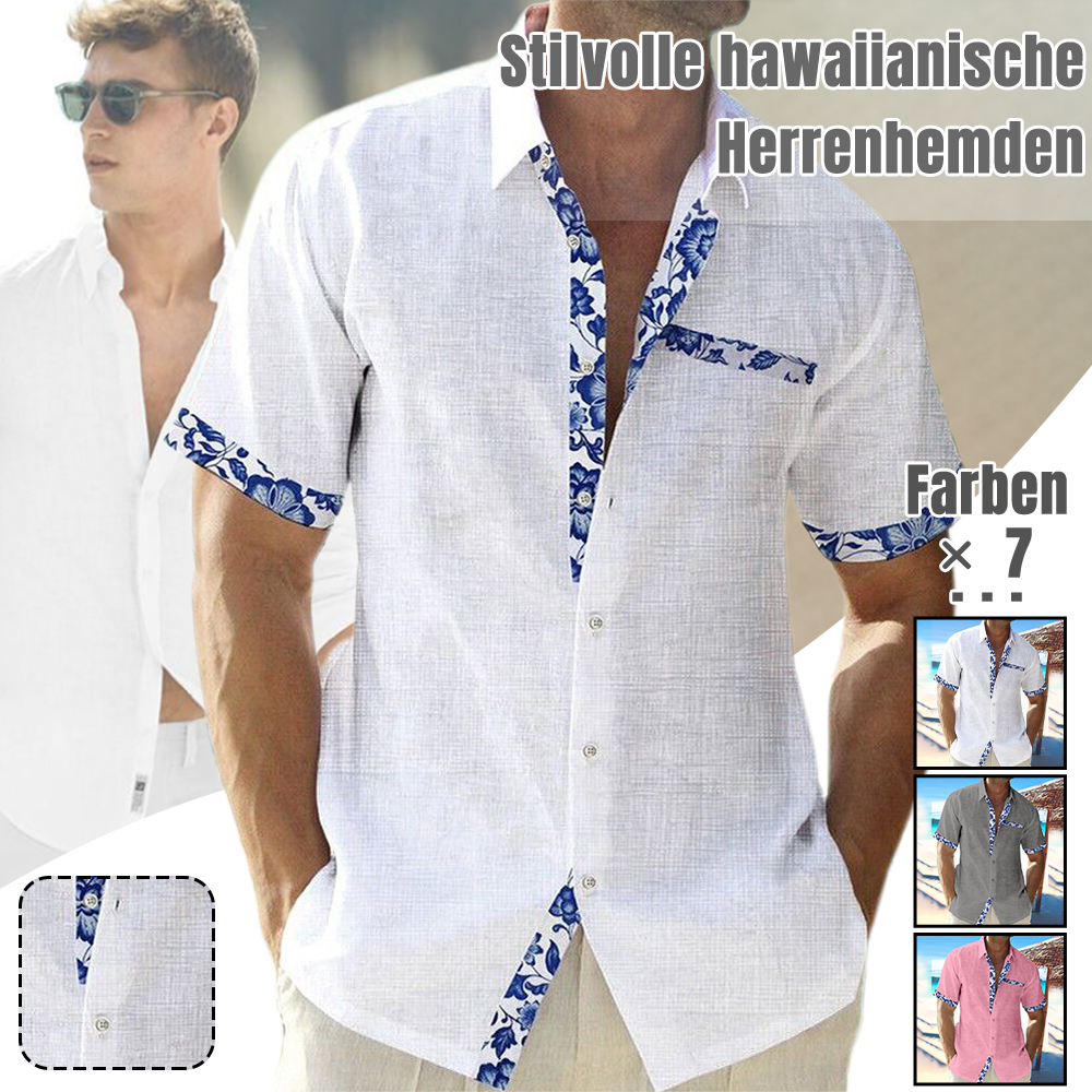 1* Modisches Hawaiihemd mit Revers und kurzen Ärmeln für Herren