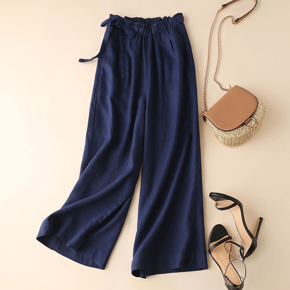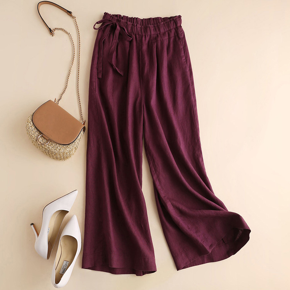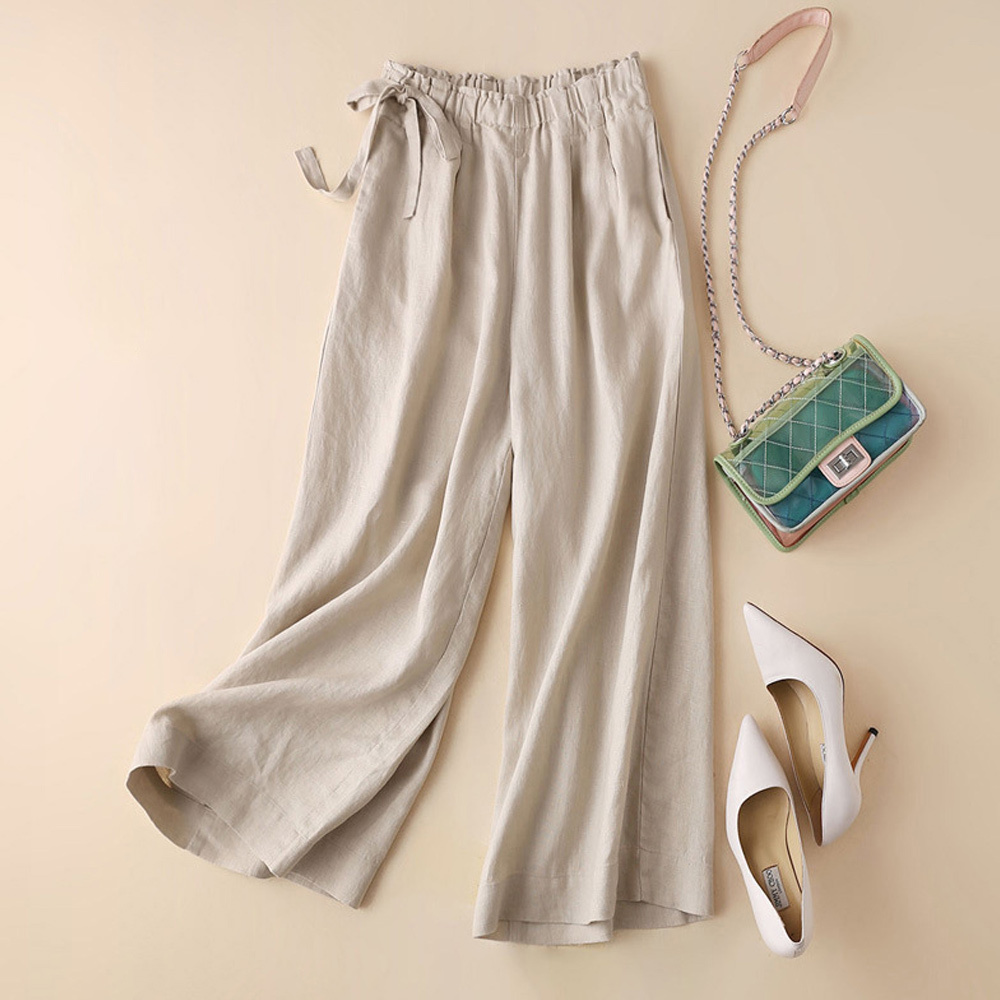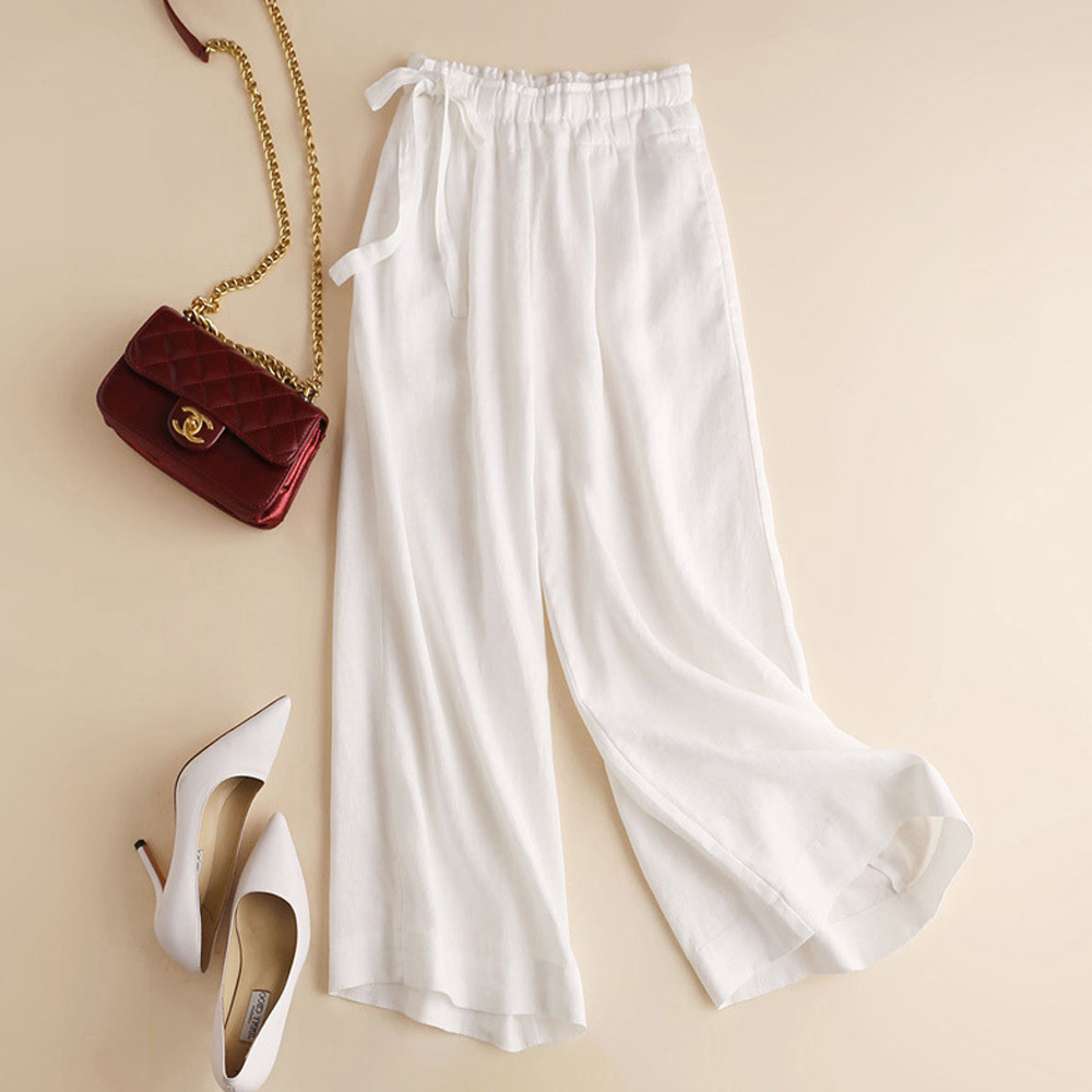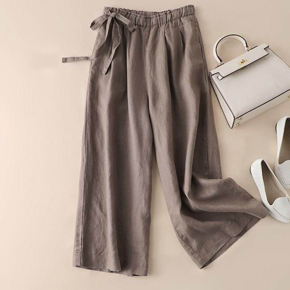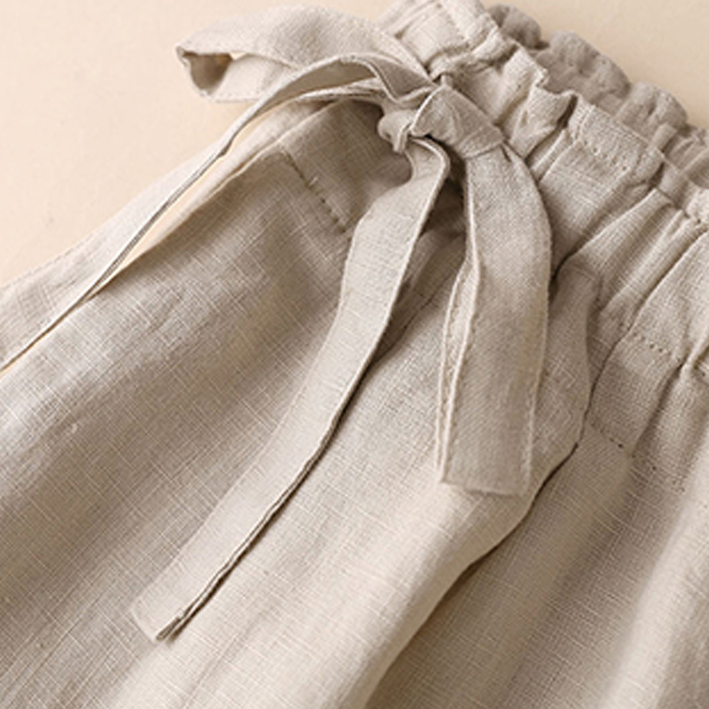 Alvode™ Neue hoch taillierte Damenhose mit weitem Bein aus Baumwolle und Leinen mit seitlichem Bindeband