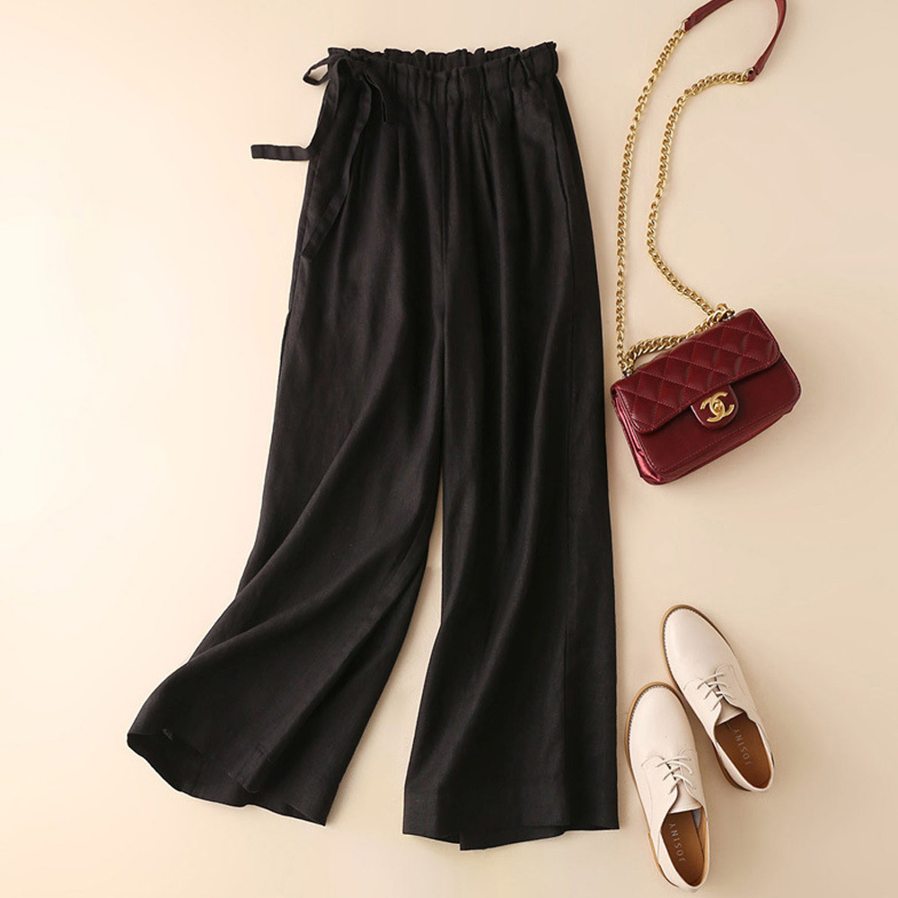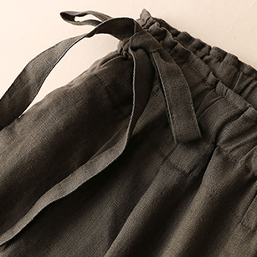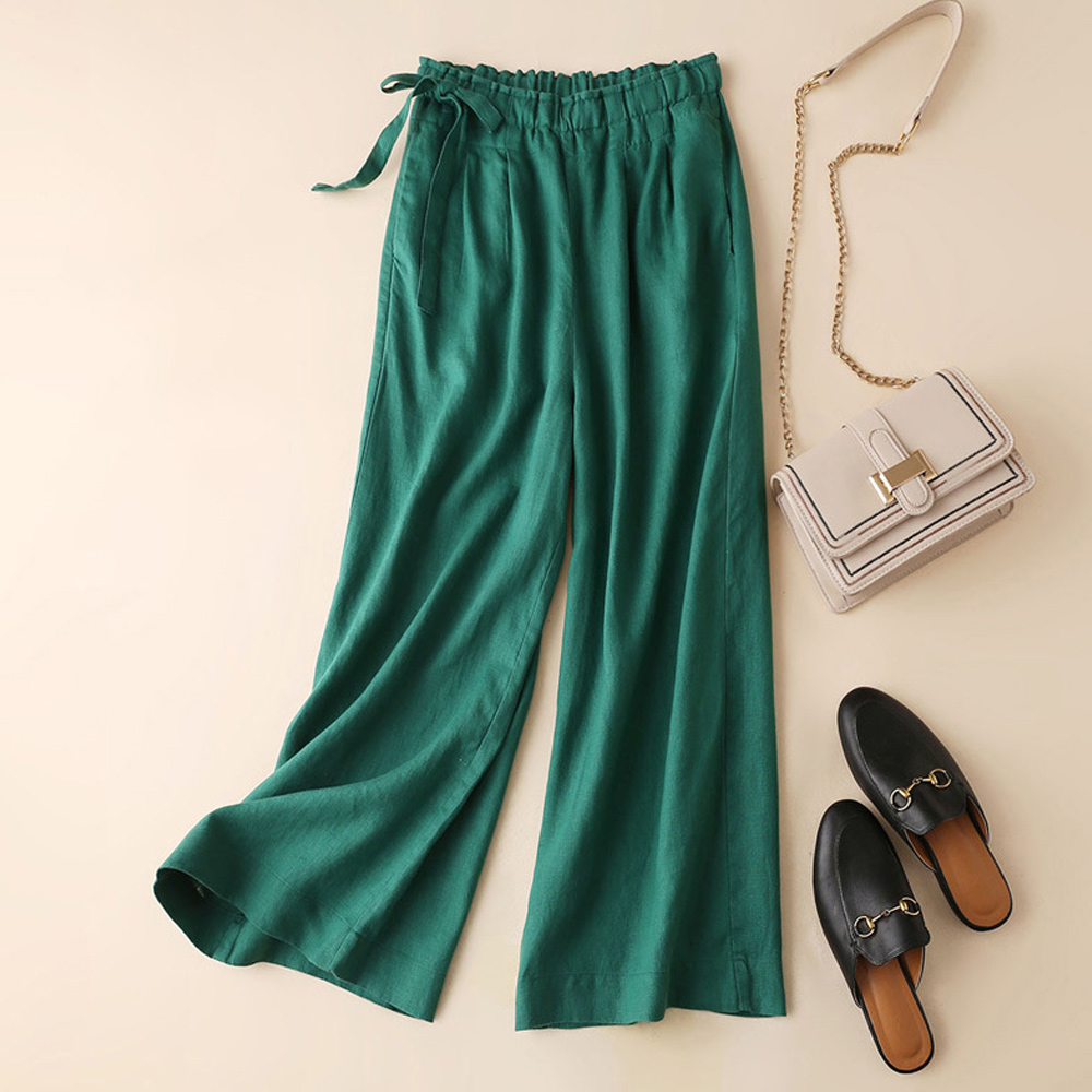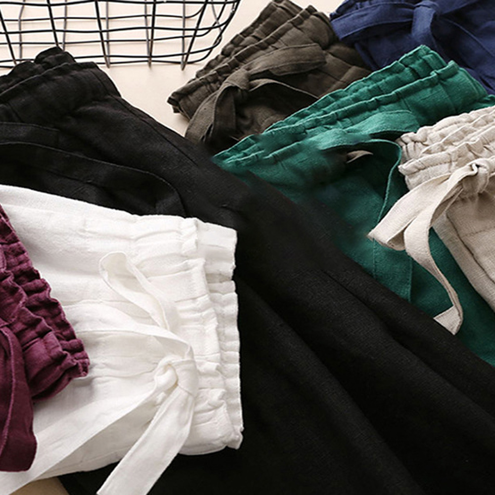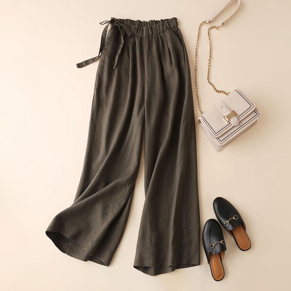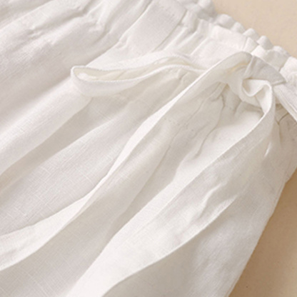 Alvode™ Neue hoch taillierte Damenhose mit weitem Bein aus Baumwolle und Leinen mit seitlichem Bindeband