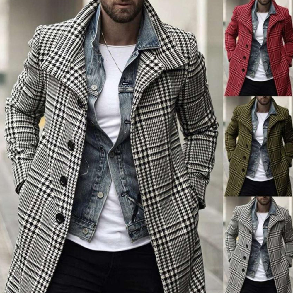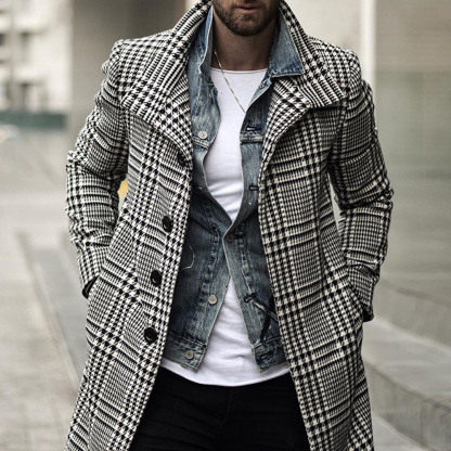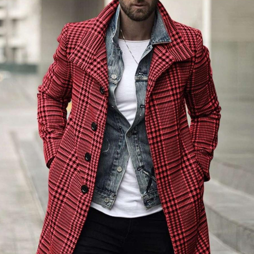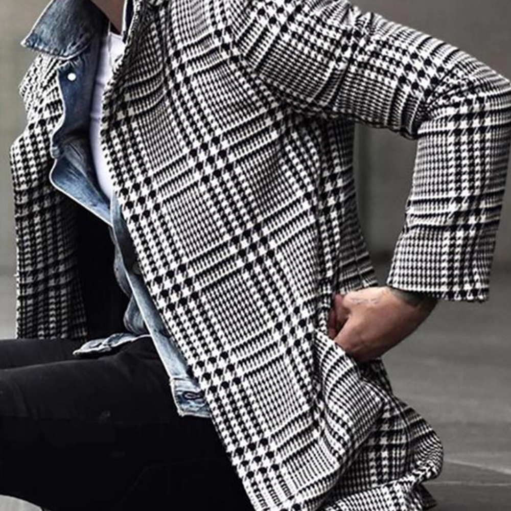 Neuer modischer mittellanger Mantel mit kariertem Revers für Herbst und Winter