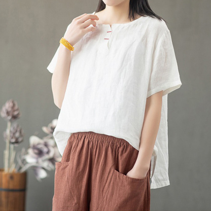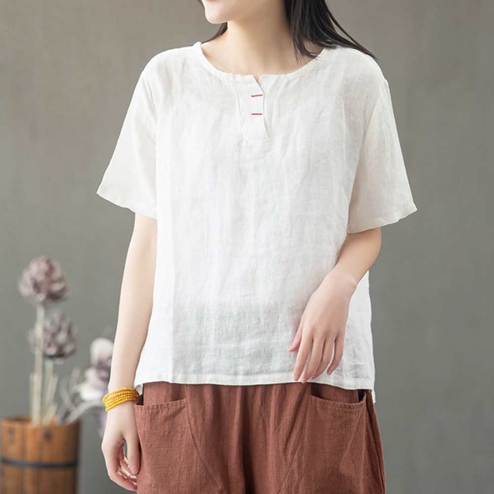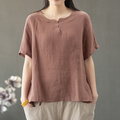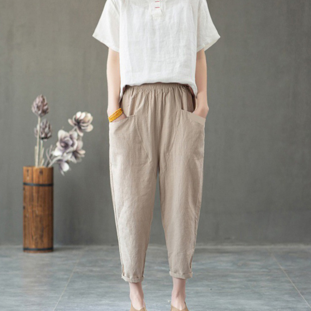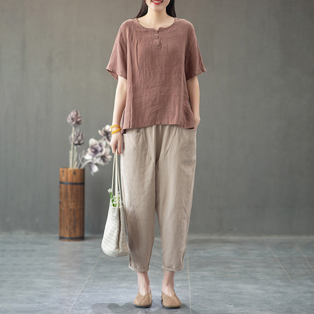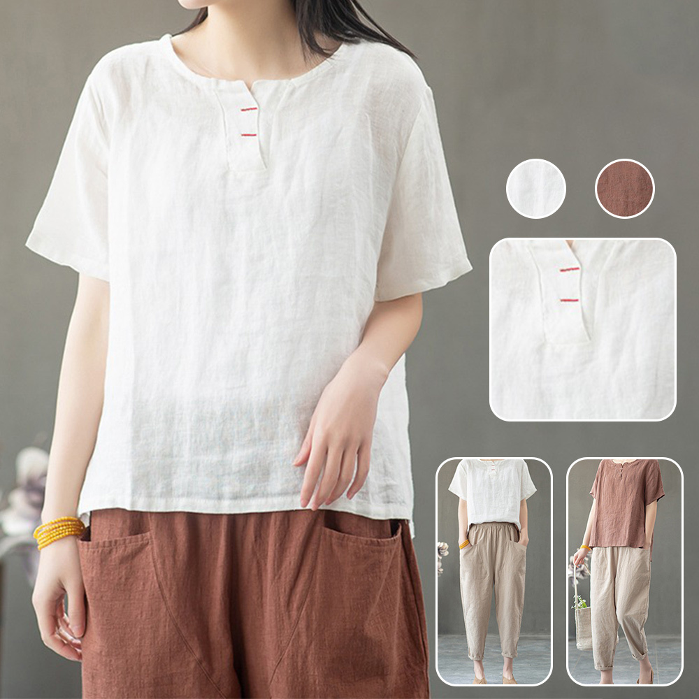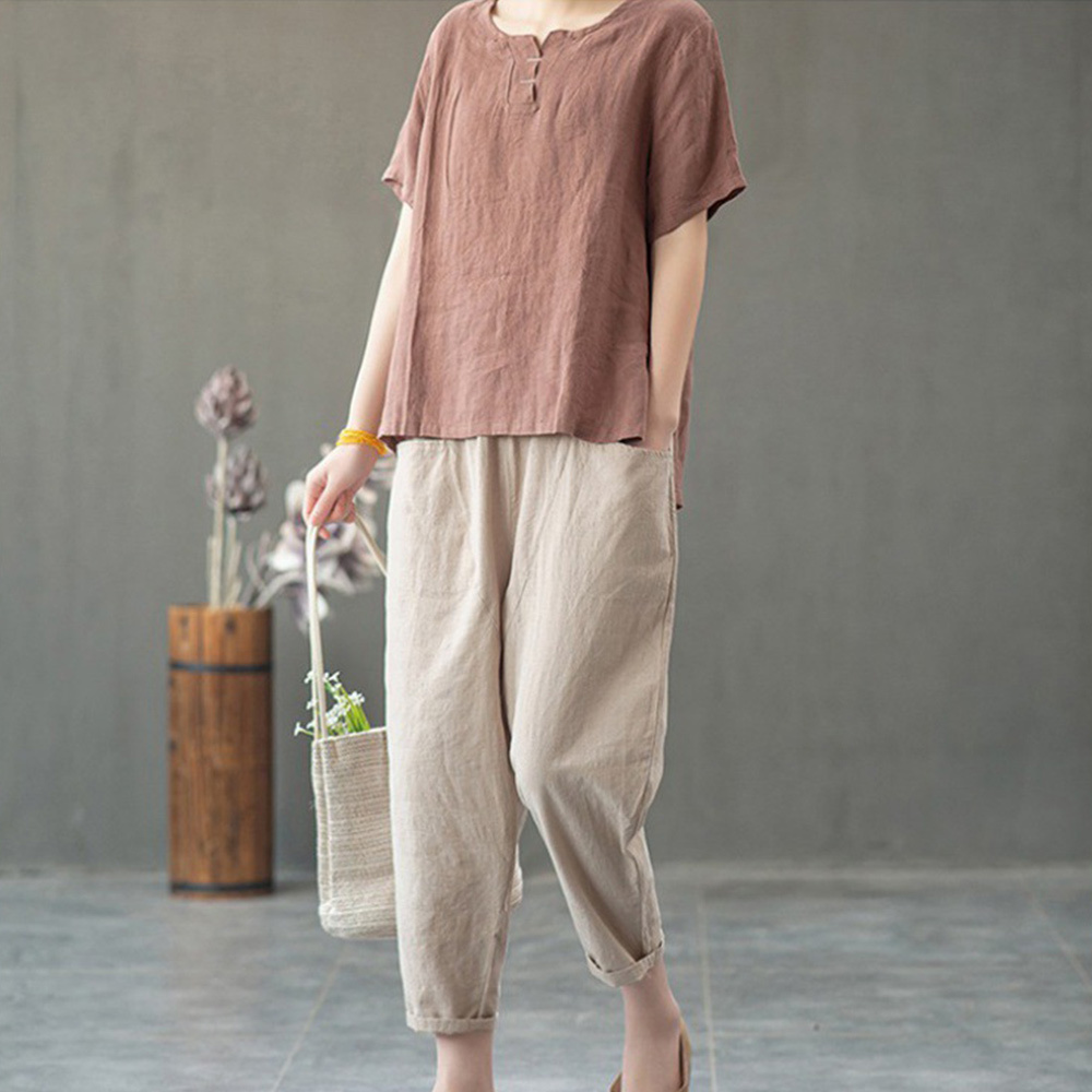 Alvode™ Neues Sommer-Zweiteiler-Set für Damen aus Baumwolle und Leinen (kurze Ärmel + Hose)