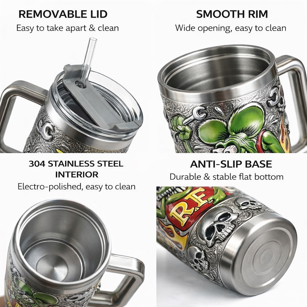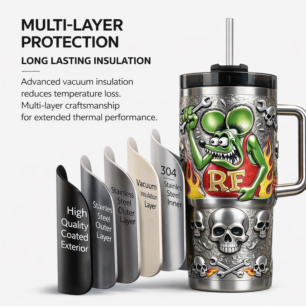 🏁🔥 Rat Fink Garage Edition Tumbler ist da! Bringen Sie rohe Garagenenergie direkt in Ihren Alltag – dieser Rat Fink Garage Edition Tumbler ist nicht nur ein Becher, sondern ein rollendes Statement von Rebellion, Geschwindigkeit und Attitüde.